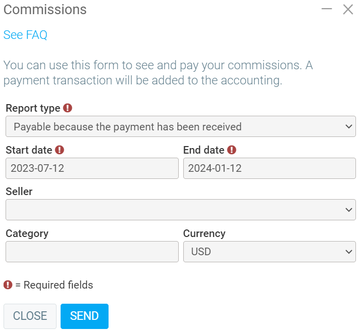 You can therefore choose the date of sales, a particular seller (optional), a category of products and services (optional) and a currency (optional). Additionally, you can choose the type of report, here is the explanation of each option: