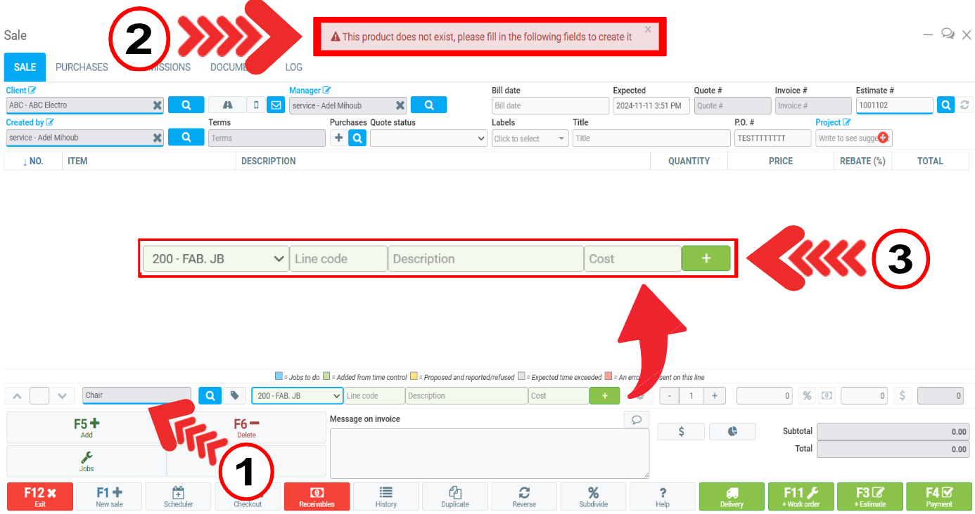 In the Point of Sale, enter the new product in the space above the F5 + Add and F6 - Delete buttons.