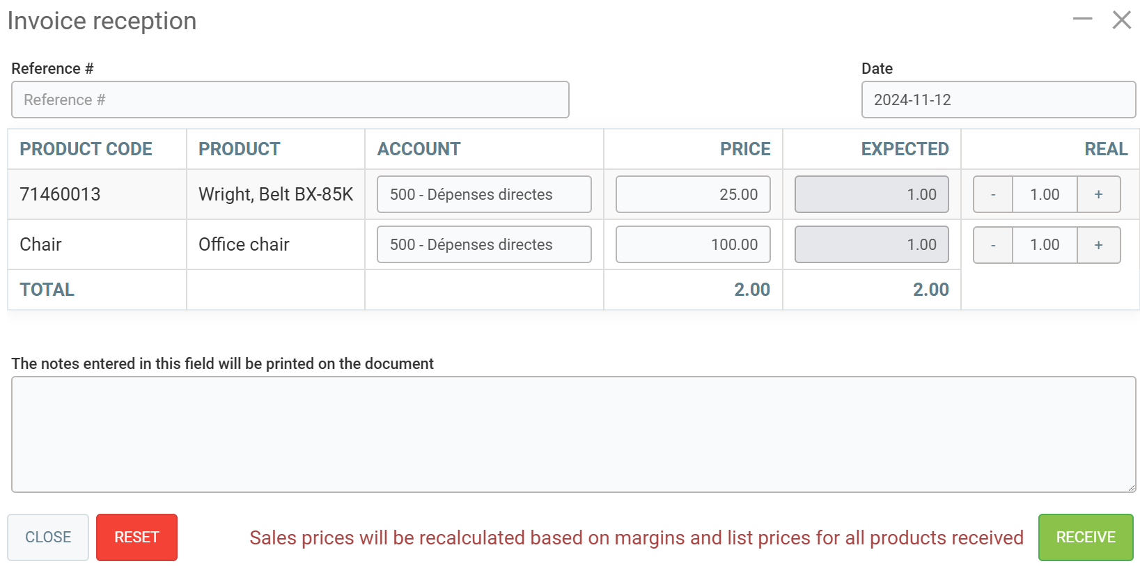 Check or uncheck the “Receive the quantities of this purchase” box, depending on your requirements.