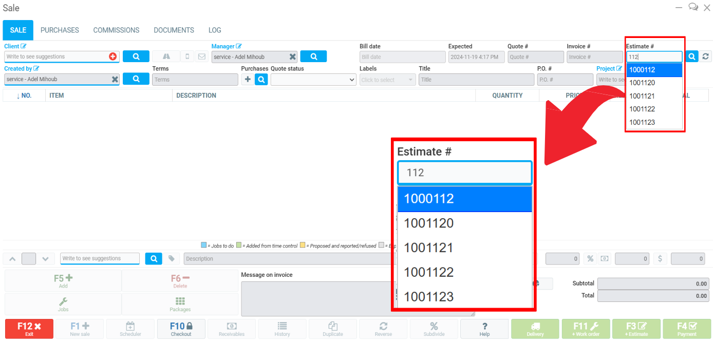 Retrieve Client's Estimate in the Point of Sale in GEM-BOOKS