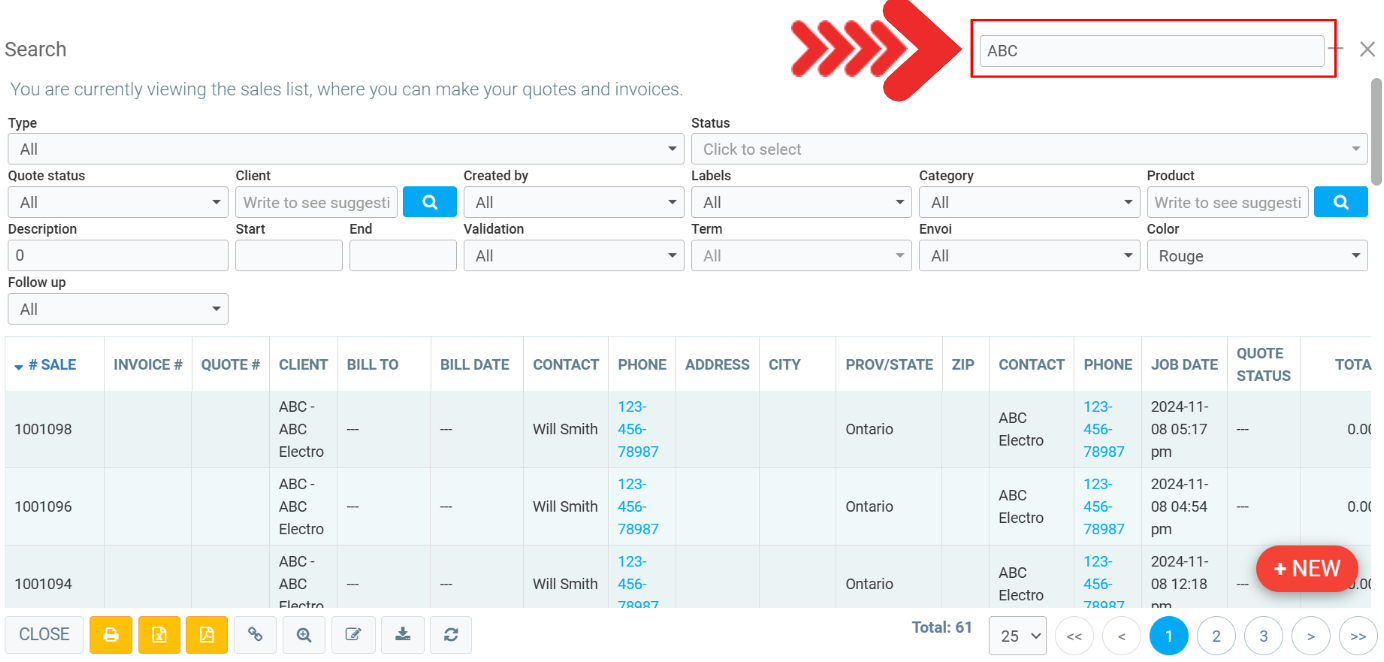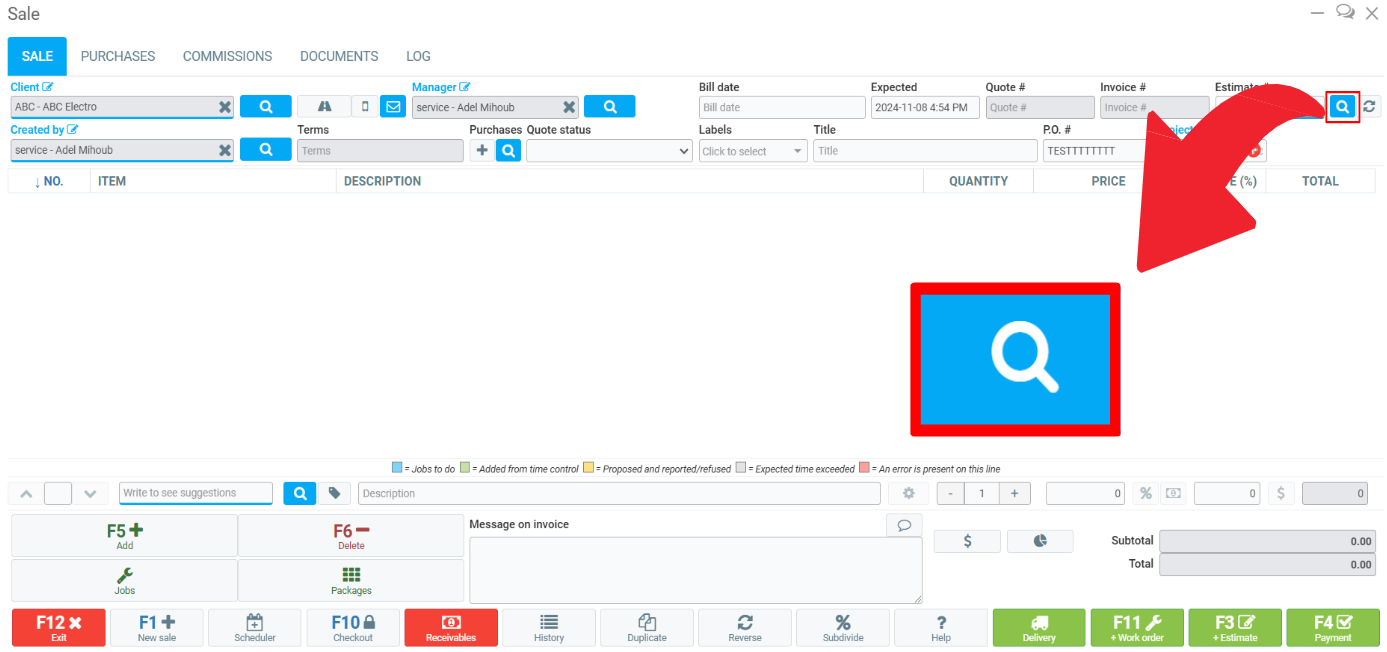 To do this, click on the magnifying glass in the top right corner of the Point of Sale, next to the estimate number.
