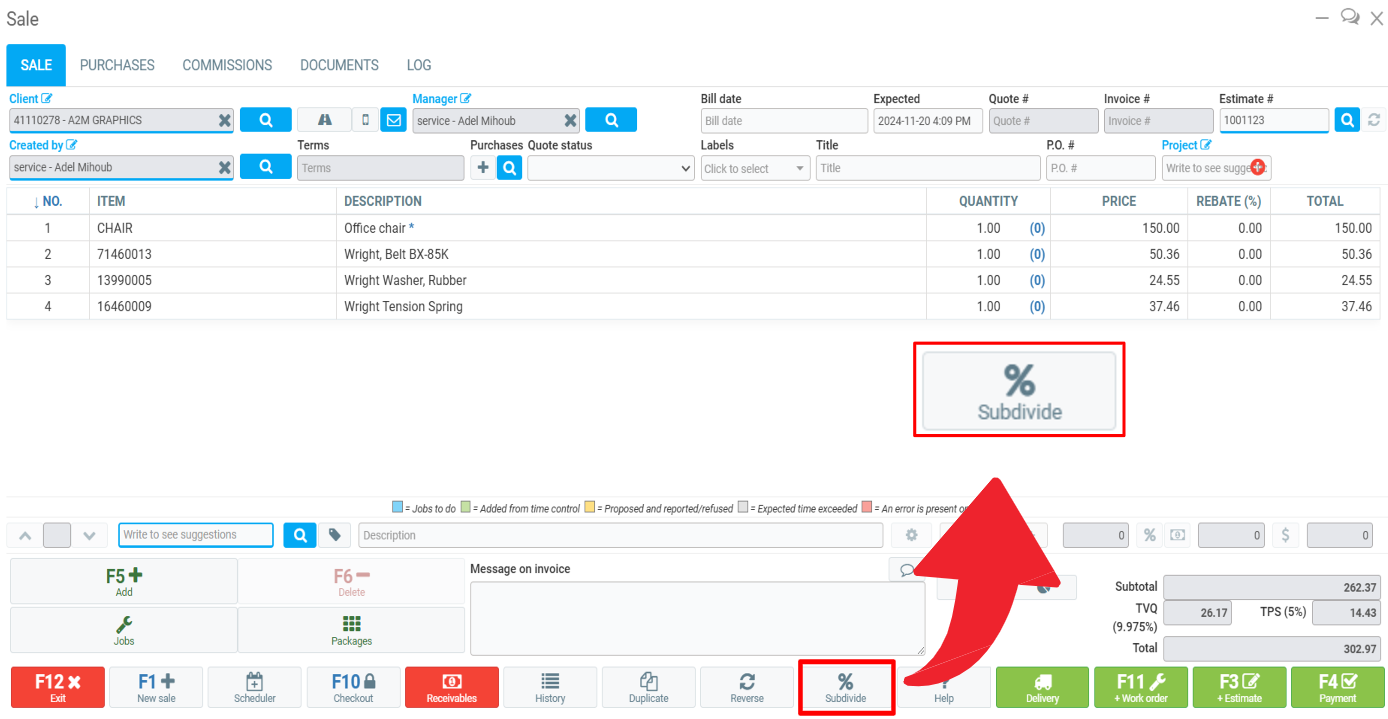 First, we are going to Subdivide a sale, so that we can create an invoice for only part of it.