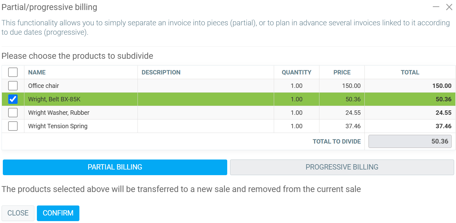 Sometimes, you may need to create an invoice for only part of a sale, rather than for the entire sale.