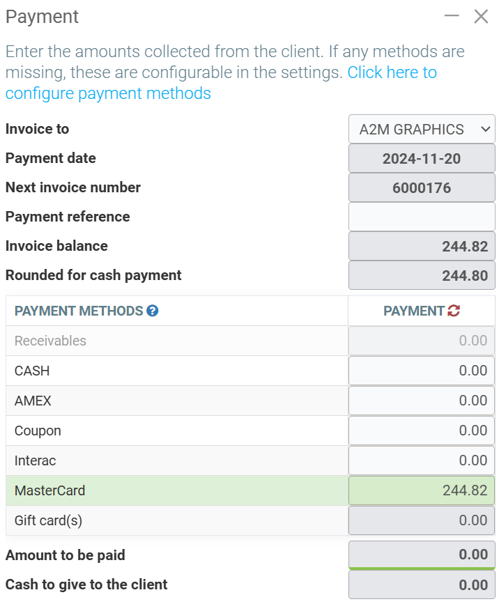Use the F4 key or click on Payment in the bottom right corner.