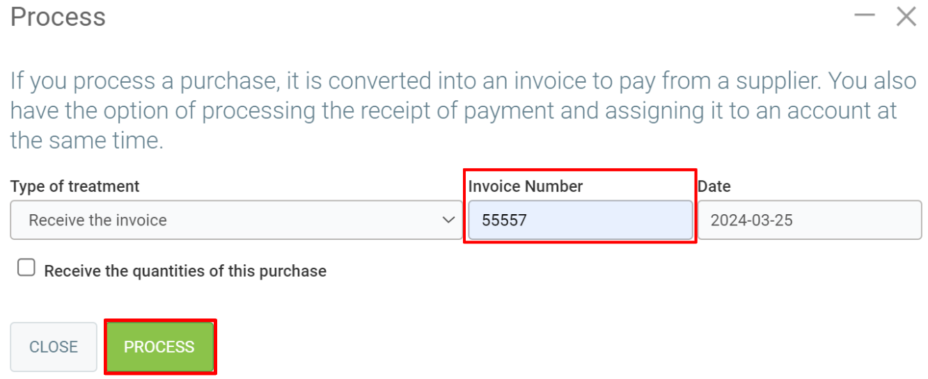 In the new window, enter the invoice number and click on Process.