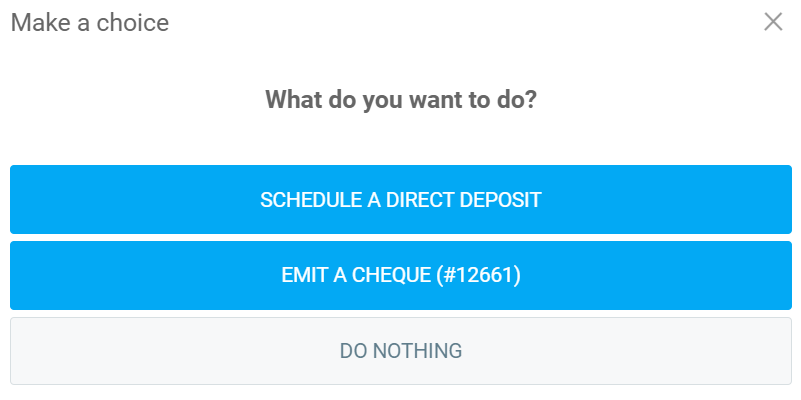 Options include: ''Schedule a direct deposit'', ''Emit a cheque'' and ''Do nothing''. Choose the "Do nothing" option.