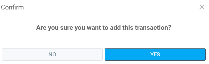 A confirmation window opens with the following message: ''Are you sure you want to add this transaction? Select the Yes option.