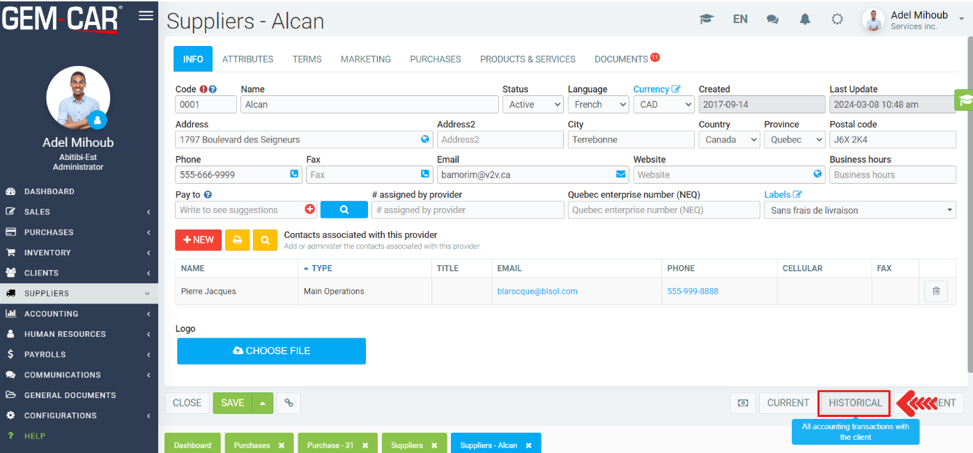Return to Supplier > Supplier and select the desired supplier, then click on History.