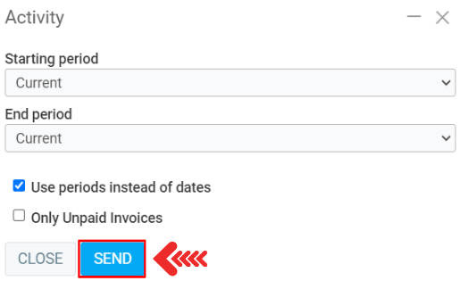 The next window displays the desired period. Click on Send.