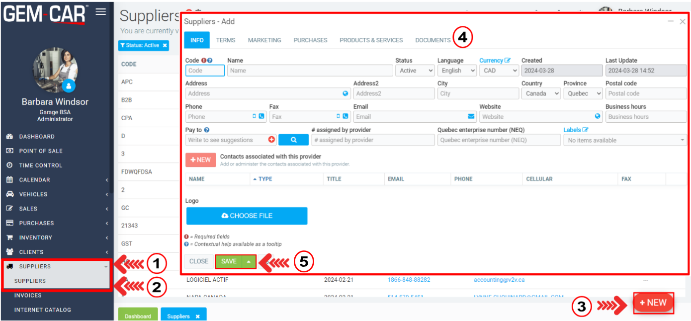 Click on Supplier > Supplier > +New.