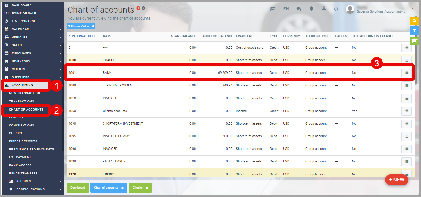 Access Chart of Accounts: From the main menu on the left of the application, click Accounting > Chart of Accounts.