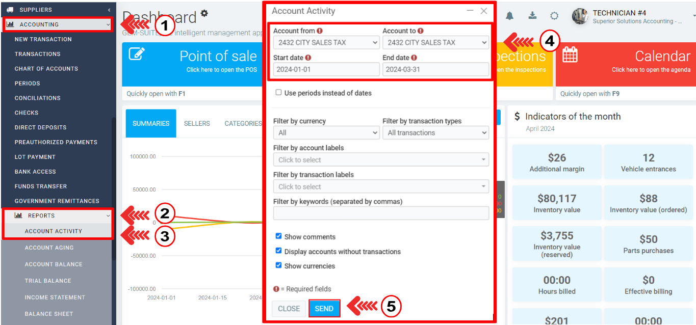 In the menu on the left, click on Accounting > Reports > Account activity.