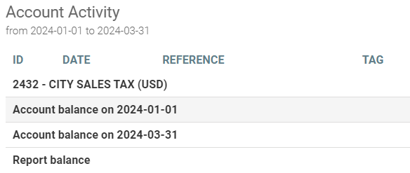 Note: to generate specific tax reports, such as city or state taxes, the accounts to select are: