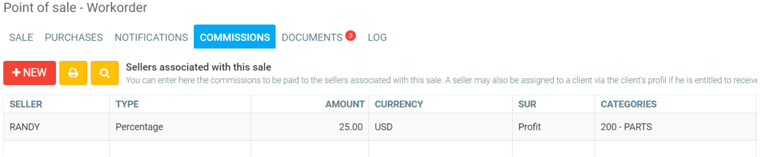 Depending on your configurations, this list will be automatically populated by the system and updated with each change applied to the sale (sale, profit, client, etc.). You can also manually add commissions in this list, or modify those which have been added by your configurations.