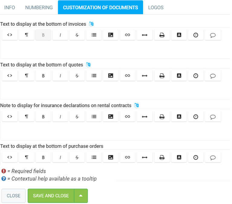 It is possible to modify your invoices, quotes or purchase orders to add additional information. Such as to inform your customers of payment terms, an upcoming change in your organization's policies or other.