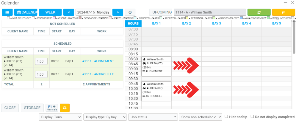 Your calendar will open up on screen, left click on the appointment and drag it to the right time and bay.
