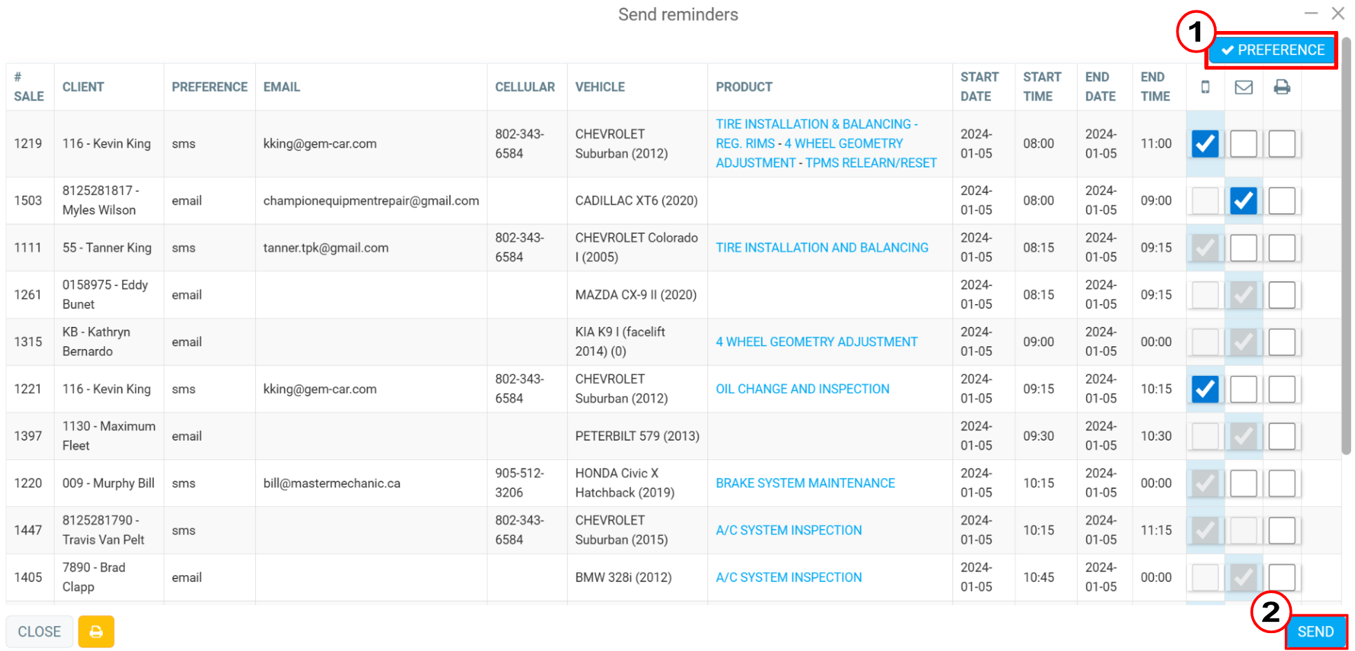 Confirm Appointments in Batch via Email and Text Message Based on Client Preferences