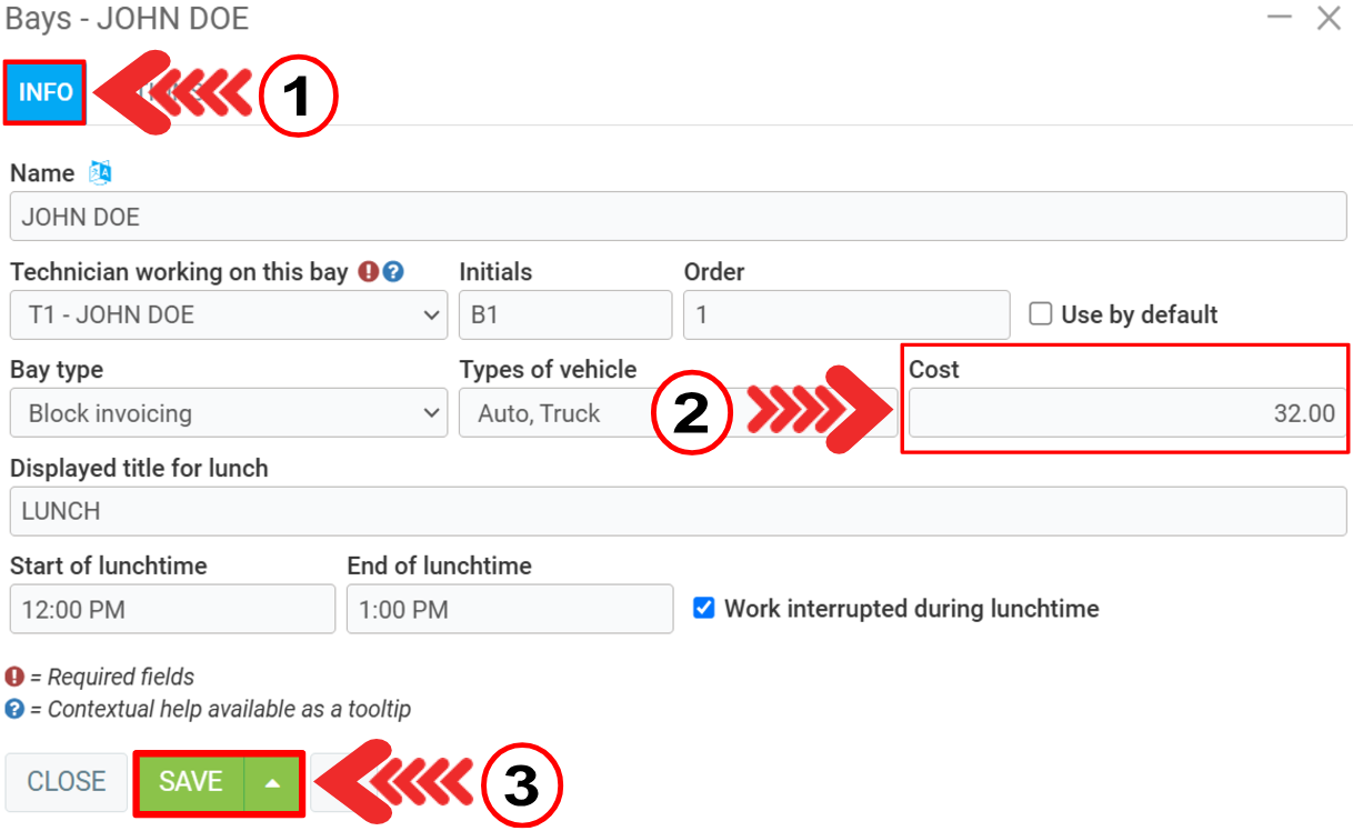 In the next window, in the Info tab, enter the desired hourly rate in the Cost.