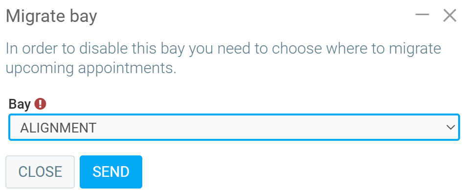 A new window will open asking you to select another bay to migrate the one you are disabling.