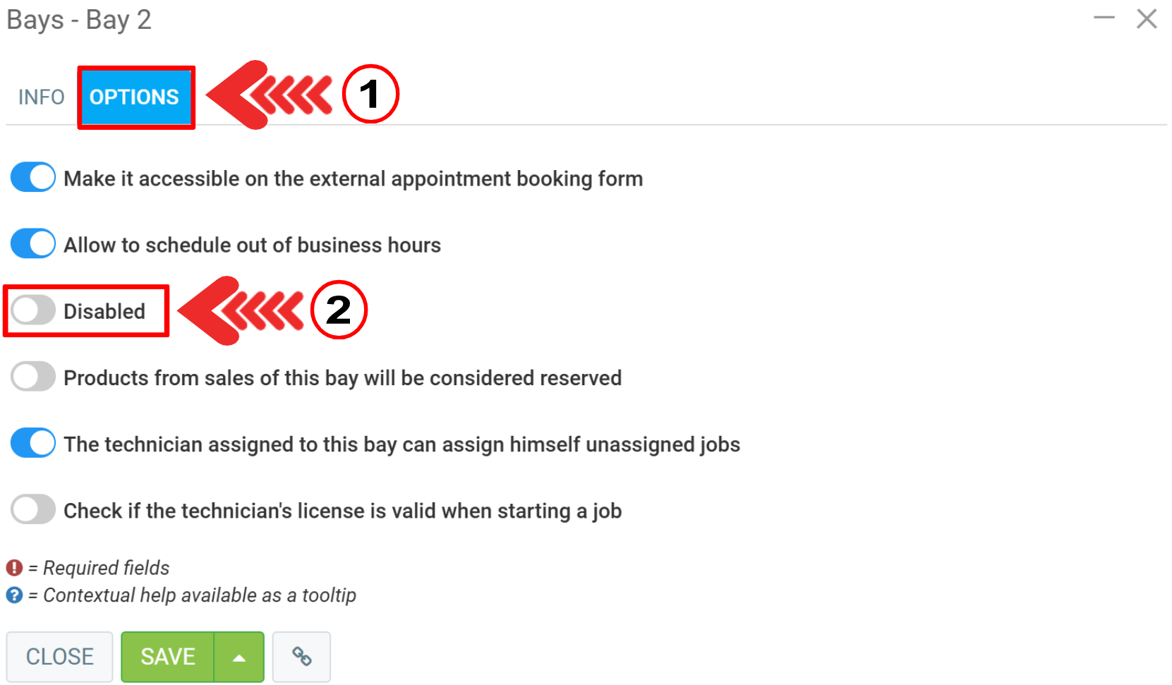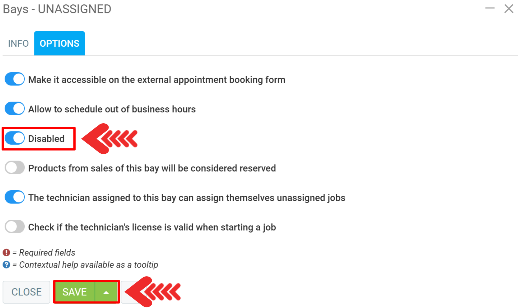 The other option is to temporarily disable a bay via the display. You can also remove it so that it is no longer visible, but all future appointments will be retained.