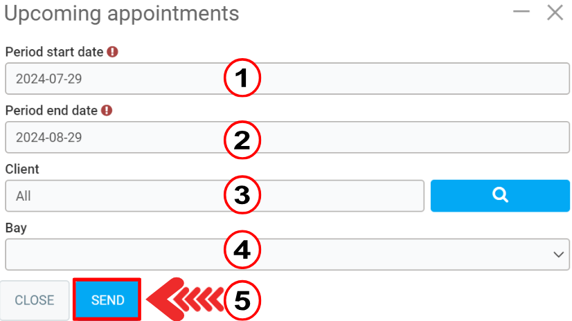 By default, the period start and end date will be set to the current day, but it is also possible change the following information: