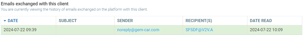 To access the history of e-mail exchanges with your clients, you need to configure your IMAP e-mail account in GEM-CAR.