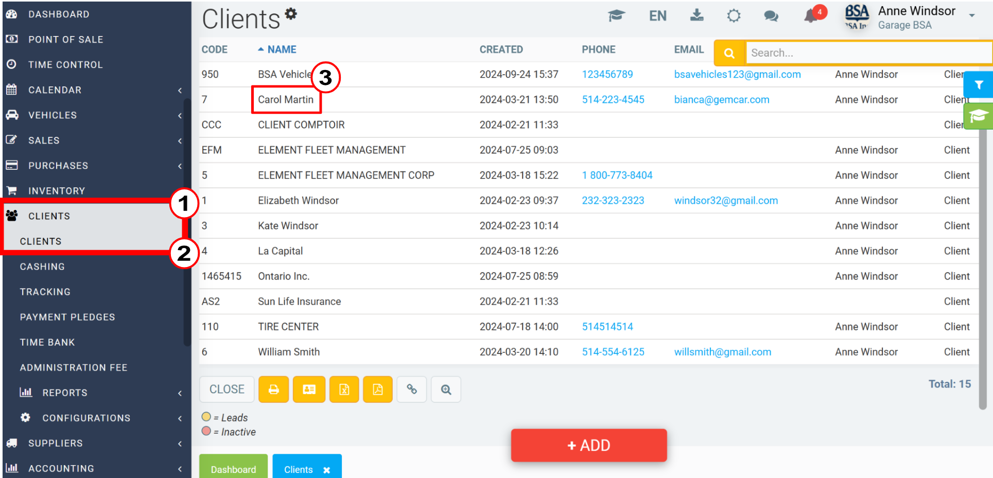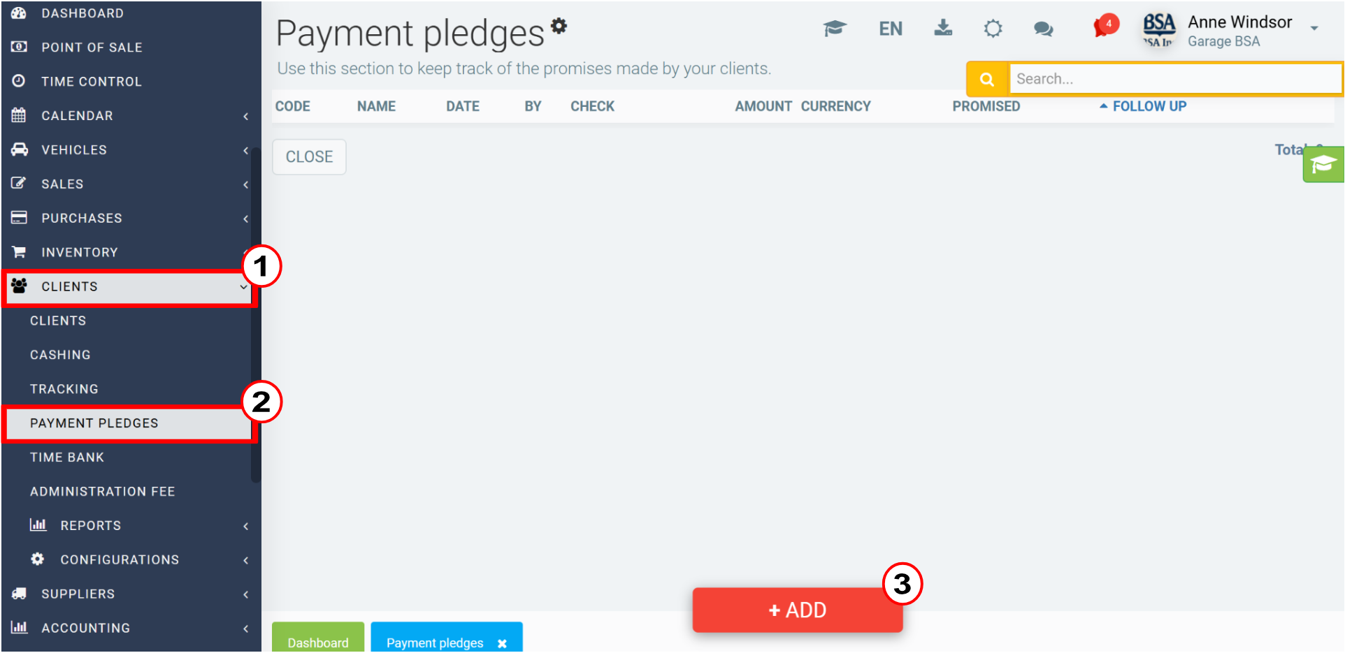Click on Clients > Clients and select the client to enter or verify the payment pledge.