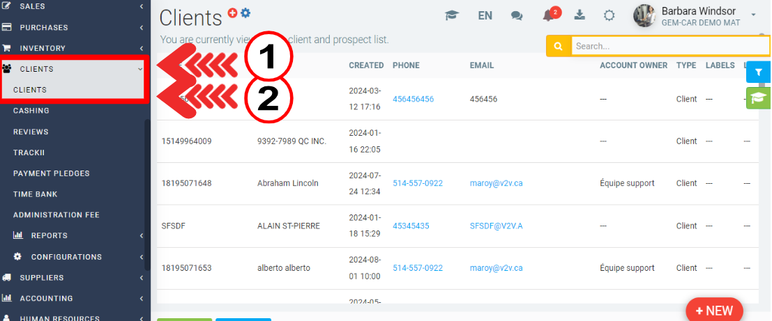 In the main menu on the left of the application, click on Clients > Clients.