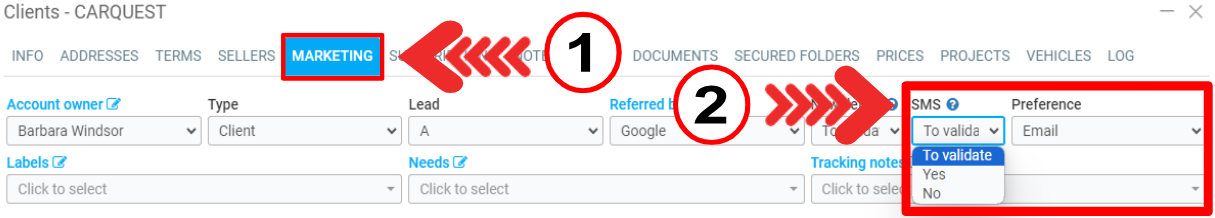 This is in accordance with data privacy laws and regulations. Under SMS, select Yes or No to record the client's consent.