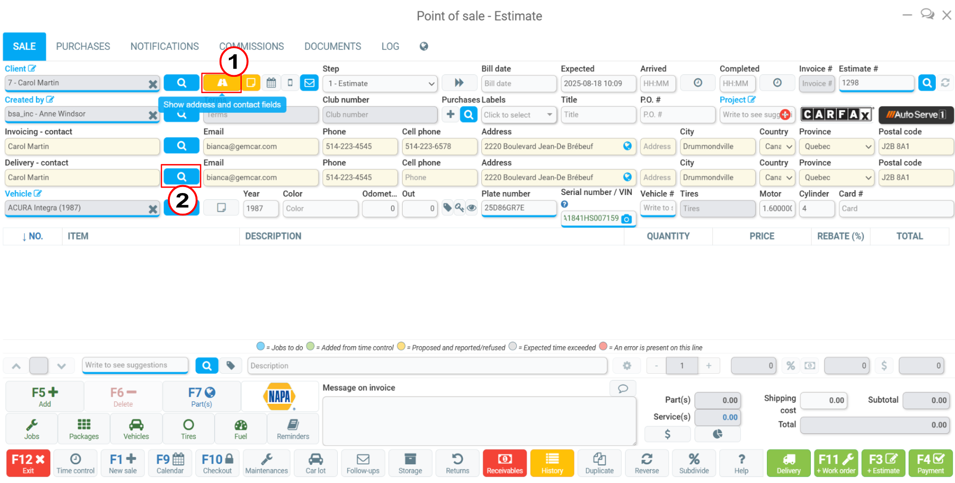 Next, click on the Show address and contact fields button next to the magnifying glass next to the client's name. The button will turn yellow and open the address menu in the Point of Sale itself.