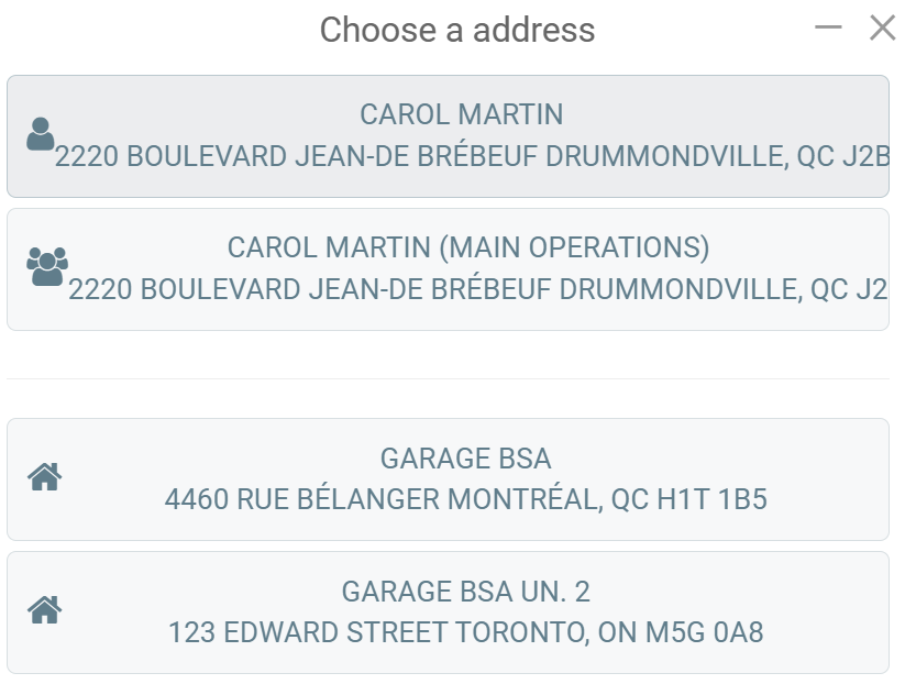 Another window will open and you can select the correct address for your work order.