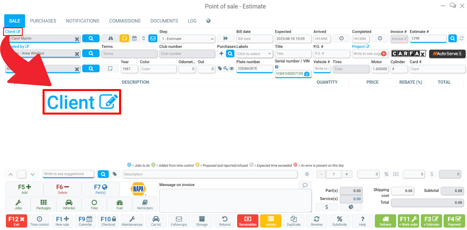 Open the Point of Sale and select the client.