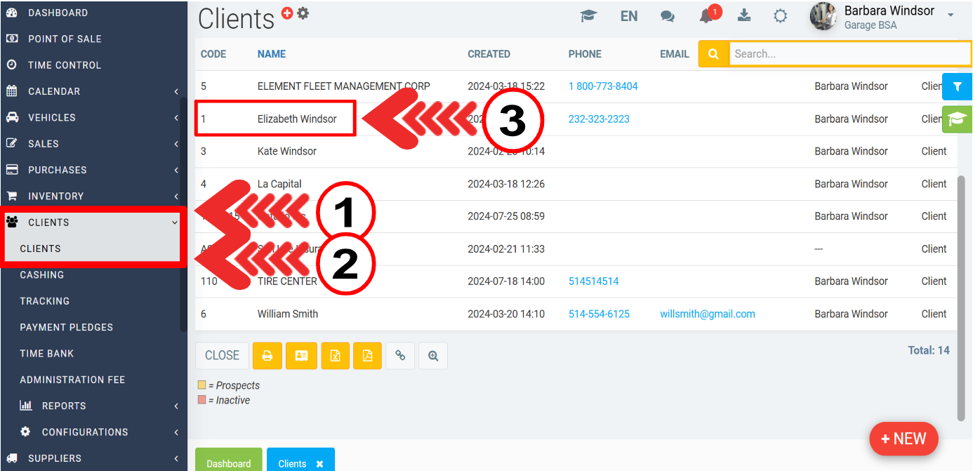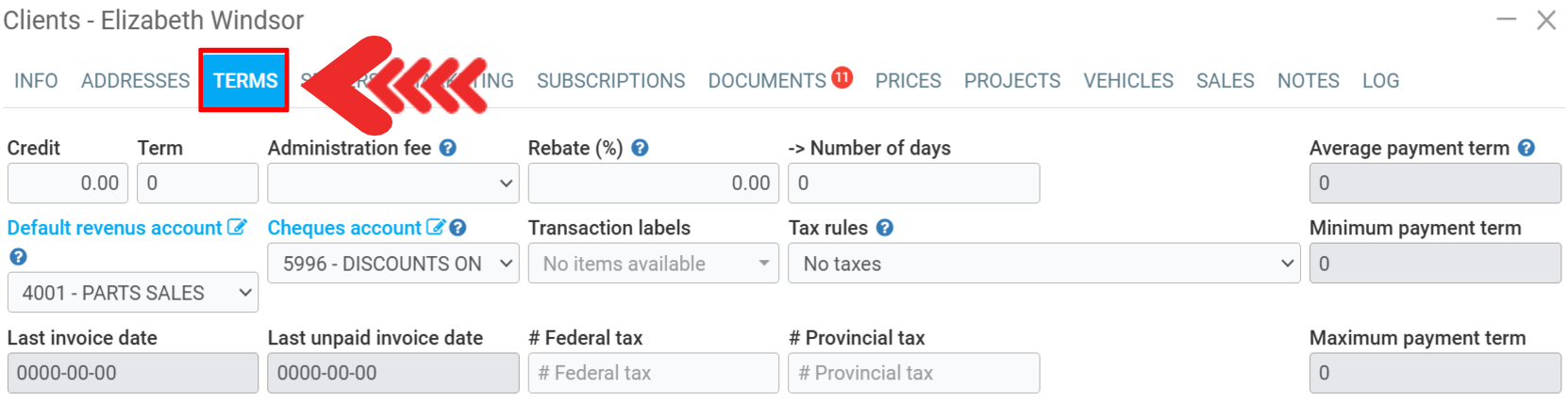 To check the terms related to the client, click on Clients > Clients. Select the client you want.
