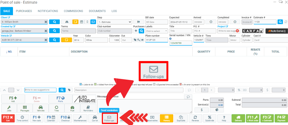 Reminders can be sent from the Point of Sale, by clicking on the Follow-ups icon.