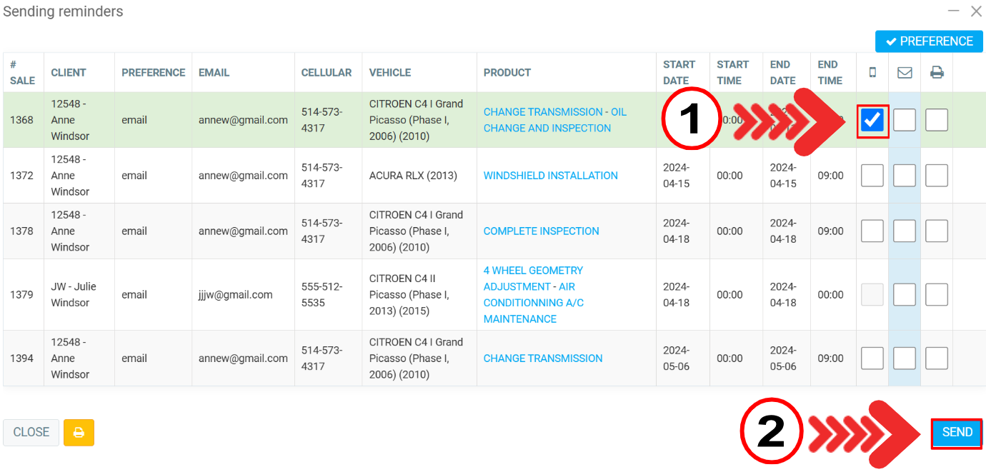 The next window will show all the reminders scheduled for all customers during the chosen period.