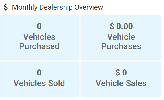 This panel shows you an overview of your dealer's performance for the current month. The 4 statistics displayed are: