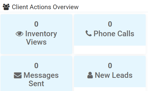 This is a real-time overview of your dealership, showing 4 statistics: