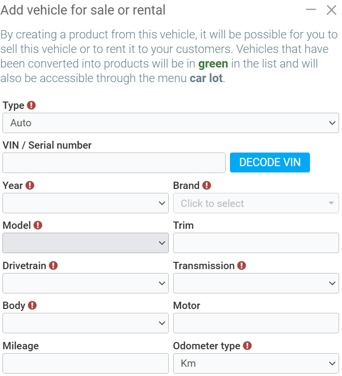 Car fleet - How to add a vehicle