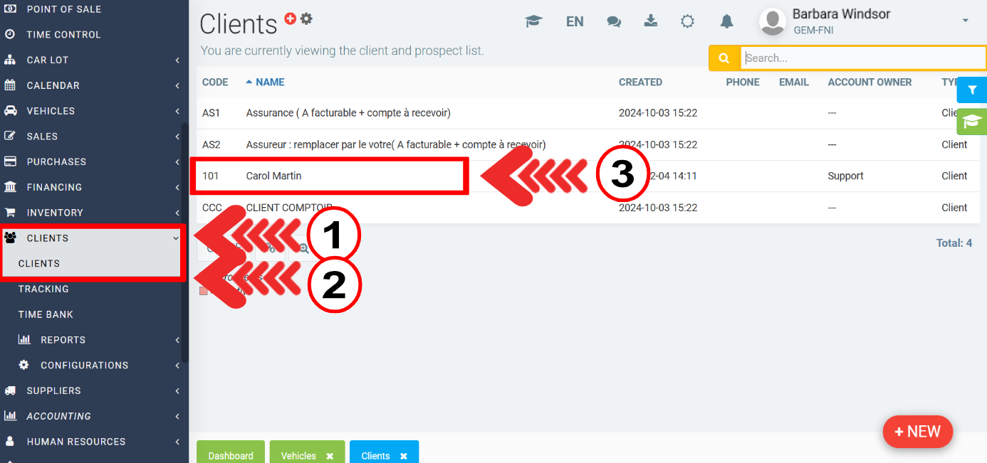 To add a vehicle for sale, click on Car lot > Car lot.