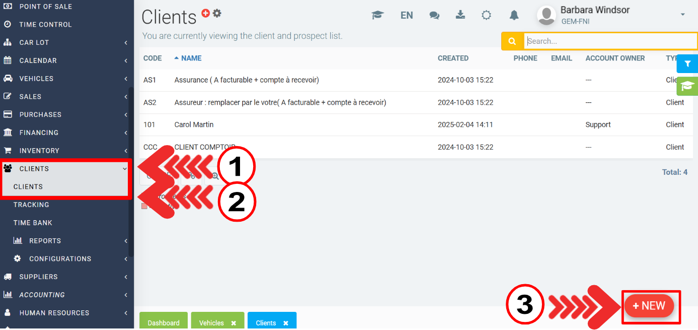 Once in the module, click on the +New button at the bottom right of the page.