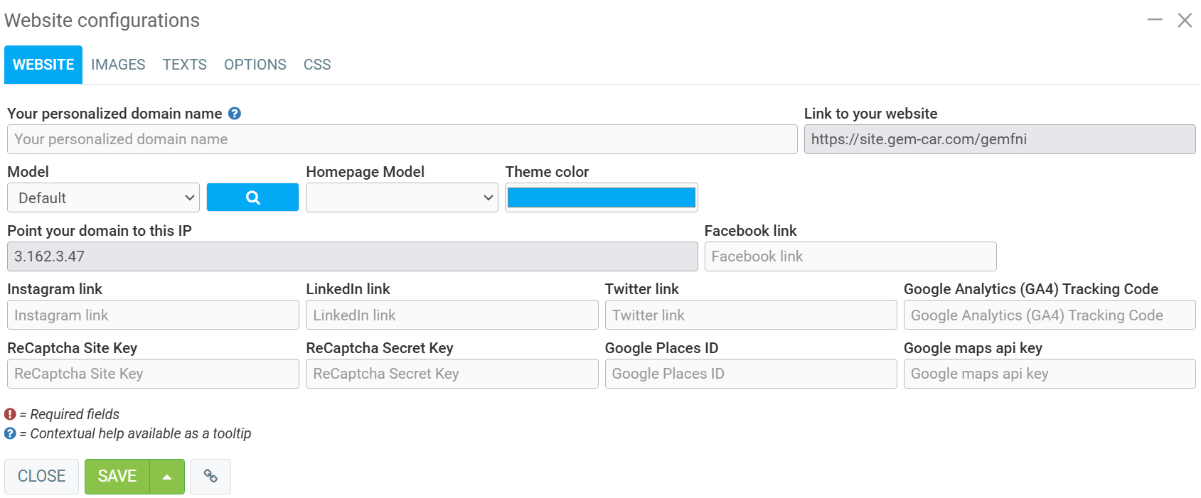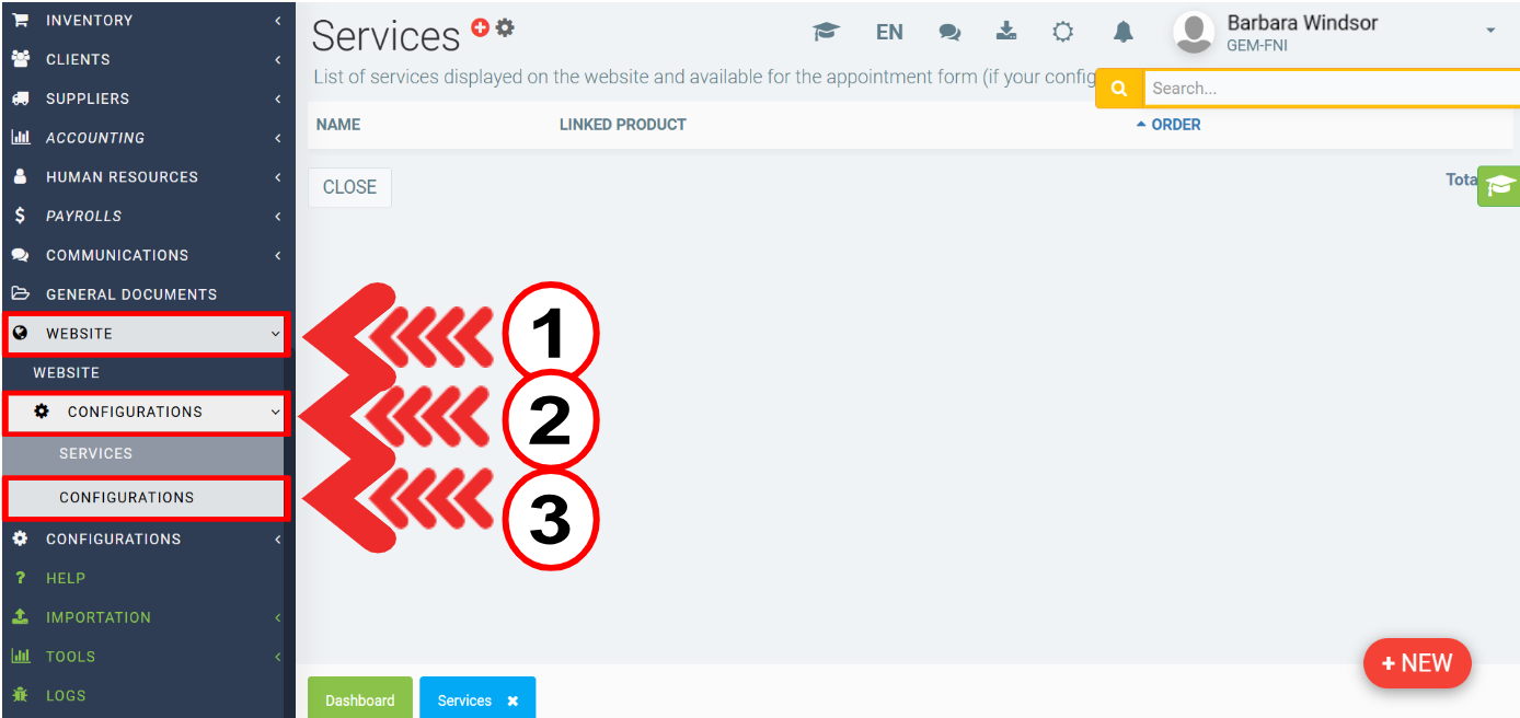 To configure and generate your website, click on the left-hand menu Web site > Configurations > Configurations.