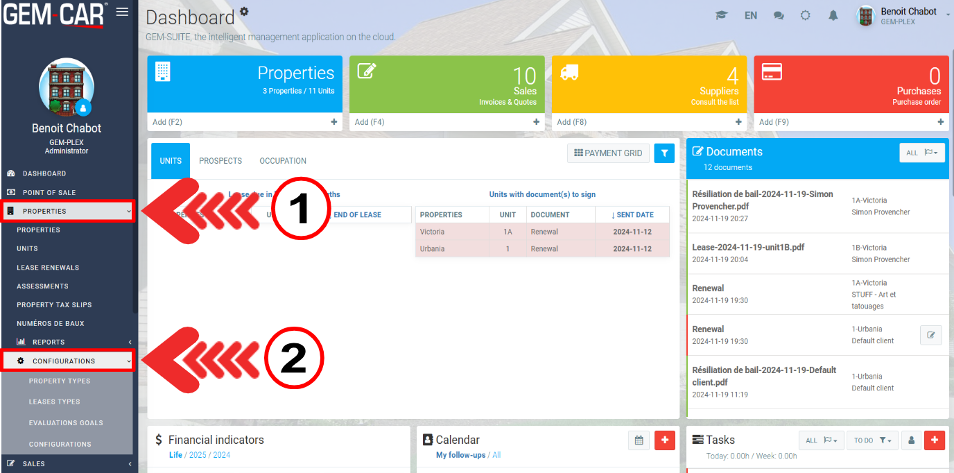 - Configurations: General configurations, such as appendix text on leases, products to be used when renting, etc.