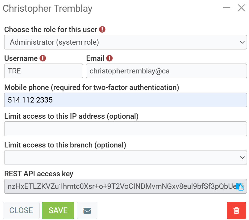 Once you have finished configuring data access for Christopher by defining the content of the fields in the pop-up window, you simply need to click the Save button.