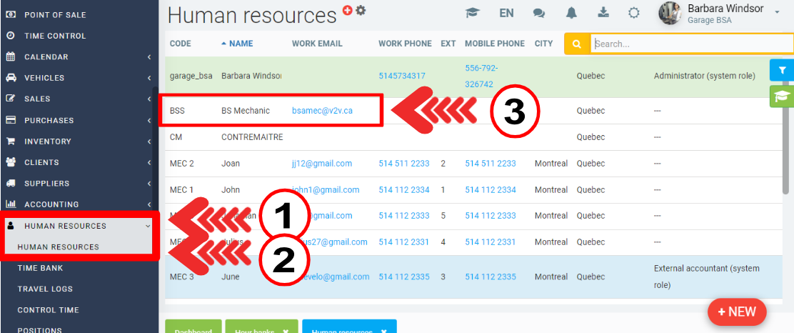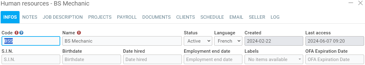 In the menu on the left, click on Human Resources > Human Resources. Select the file of the human resource you want to limit the access.