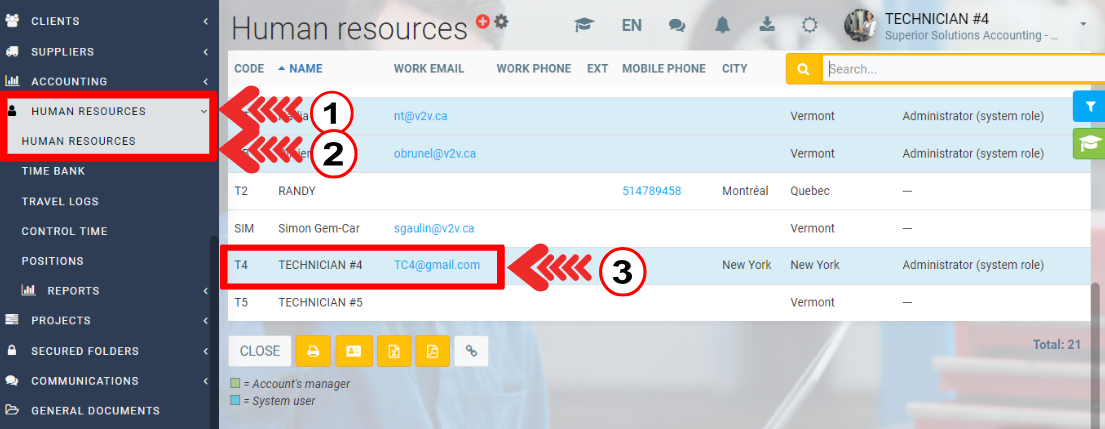 - From the left main Menu, click on Human Resources > Human Resources.
