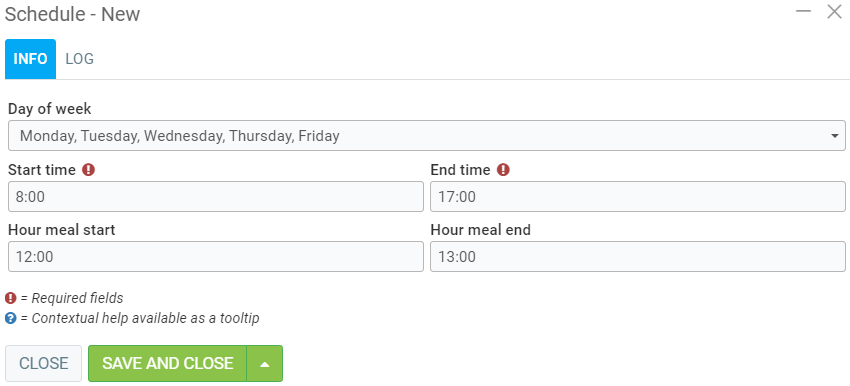 2. Select a Human Resource and go to the Schedule tab > +New.