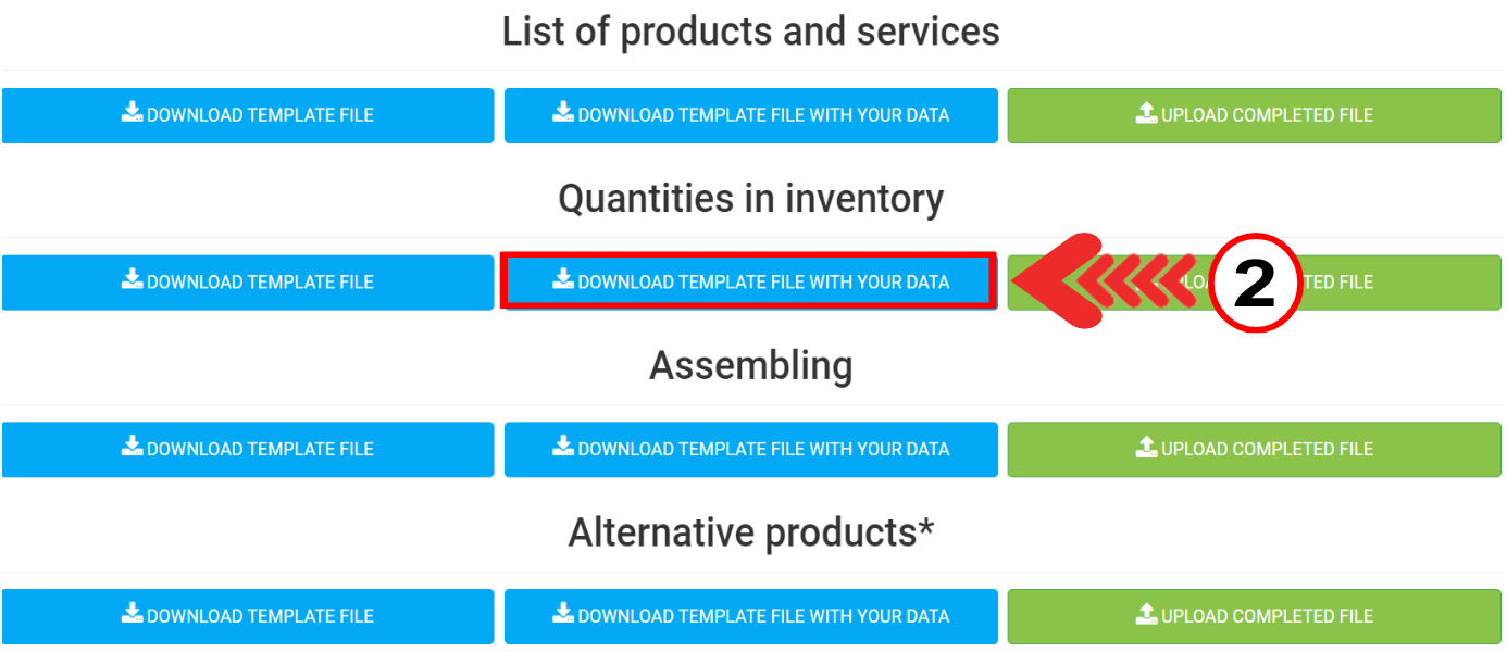But if click on Products & Services, you can create a PDF with your data, click on the blue button “Download template file with your data”.