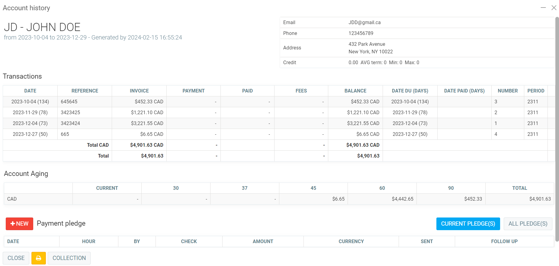 Choose the client you want to check the history of, and in the Info tab, select the button Historical in the right-hand corner of the tab.