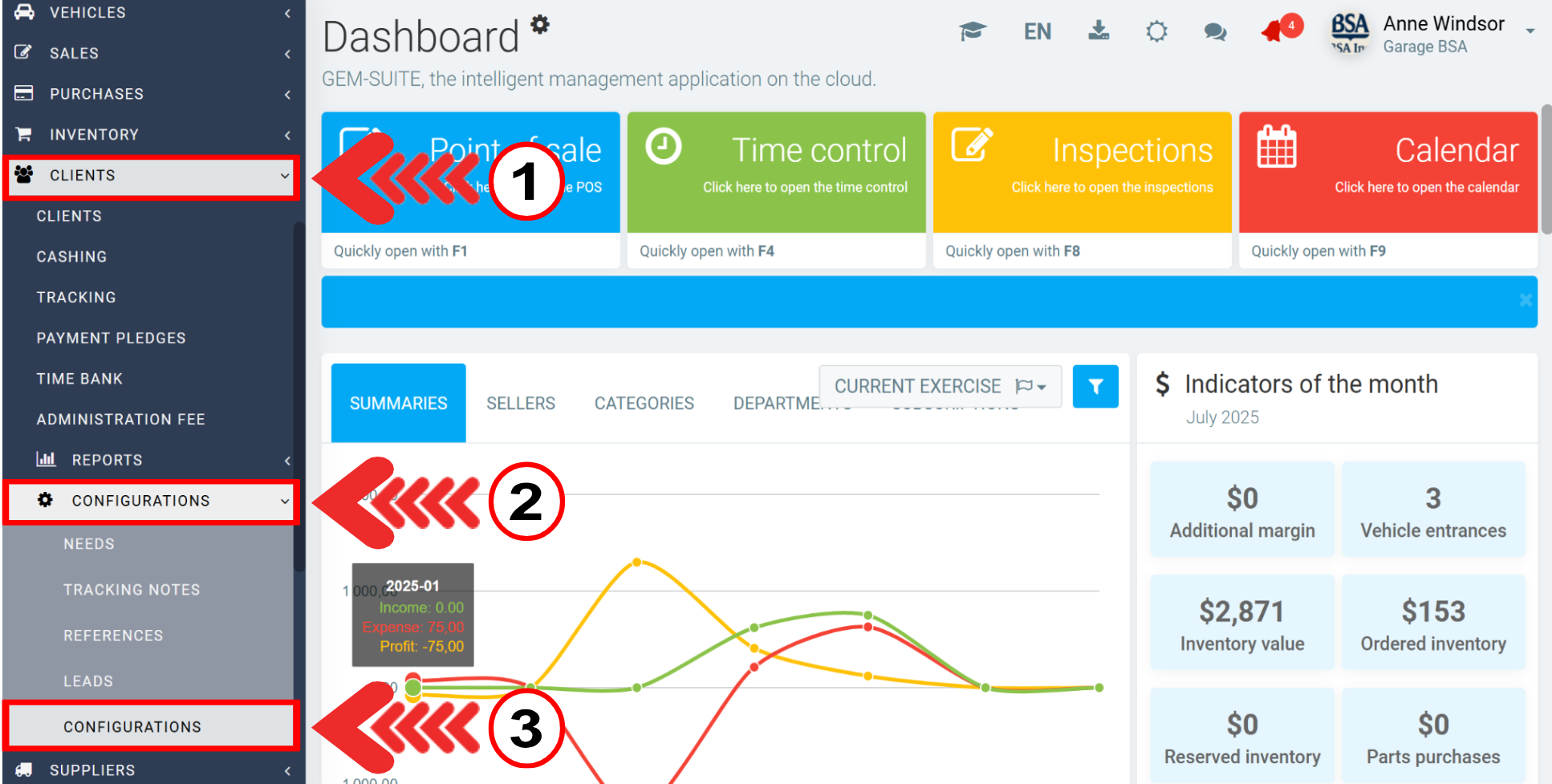 To configure this function, click on the menu on the left, on the tab Clients > Configurations > Configurations.