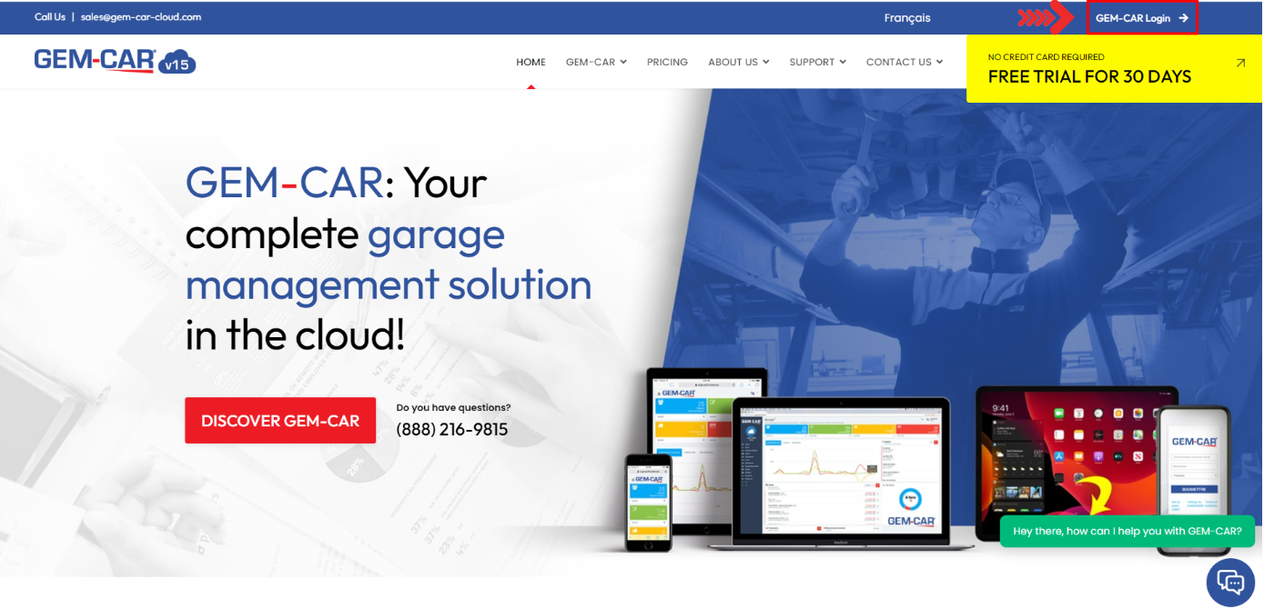 You can use your computer, logging in through the website https://www.gem-car-cloud.com/en/ by clicking on the GEM-CAR login button in the top right-hand corner.